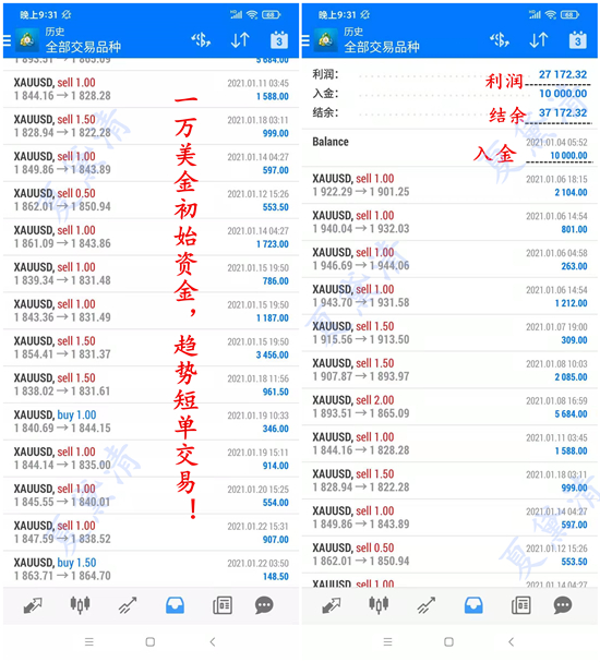 2021年1月4号入金,新年第一个月入金,目前战况不错,已经盈利两万多美金。