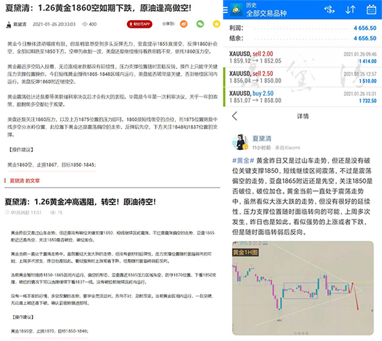 周二黄金整体是宽幅震荡走势,亚盘黛清通知学员1859进场空单,在1852位置手动止盈出局。欧盘黛清通知学员反弹1856位置顺势进场空单,止盈位给到1850,空单如期到达止盈出局。1851通知学员进场多单,止盈位给到1858,多单如期到达止盈出局。不追单,不抗单,带好止盈止损,坐收盈利即可!