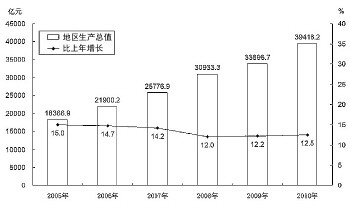 图1 2005-2010年全省生产总值及增长速度