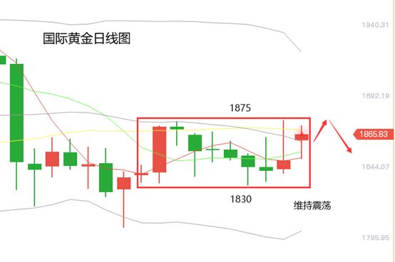 国际黄金跟随白银上涨,但涨势持久性存在疑问,可以继续关注周线布林带中轨位置,目前价格在1872美元附近,这是金价最近两周的主要压力位置,多次试探承压回落,日内黄金上涨,便是在到达1871美元附近后遭遇阻力,回吐大部分涨幅,操作上关注这里,考虑逢高做一次,突破最近三周新高至1876美元,则考虑平仓观望。黄金下方支撑关注1849美元附近,日内黄金跳空高开缺口位置,金价回补这里继续上涨,关注这里考虑逢低布局多单。白银方面,国际白银呈现逼空行情,操作风险增大,考虑到美国散户的参与热情,建议尽量寻找低位跟进白银多单,严格控制风险,或保持观望。