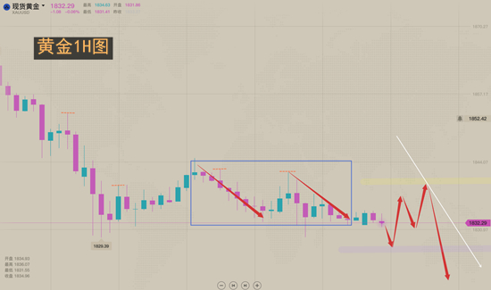 黄金今日终于破位,并且单边下行,亚盘1833现价空,跌至1827一线收割。欧盘反弹继续空了,在1825附近直接做空。