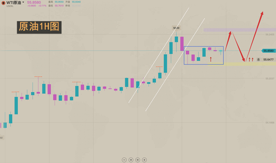 上方压力56.30/57.00,下方支撑55.60/55.00;