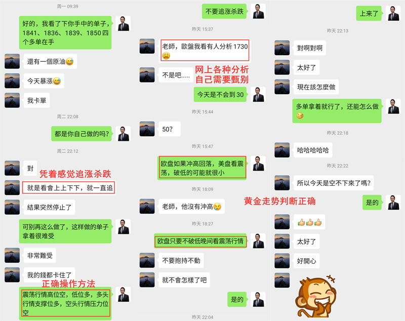 任何时候都不要去抱怨行情,首先从自身找不足,上周单边下跌行情简单,操作容易,利润丰厚,你拿到了多少盈利?锦晟实盘指导全胜收尾,信任源于实力,实盘客户大赚也不在少数,信任加执行力最后就是盈利。畏手畏脚前怕狼后怕虎不是我们的风格,把握行情的节奏,精准的点位操作是我们的交易信条。
