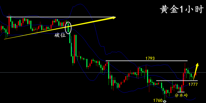 2、分水岭在周五的起涨点1769一线,不能破。凌晨回撤低点1777附近,压力转支撑。
