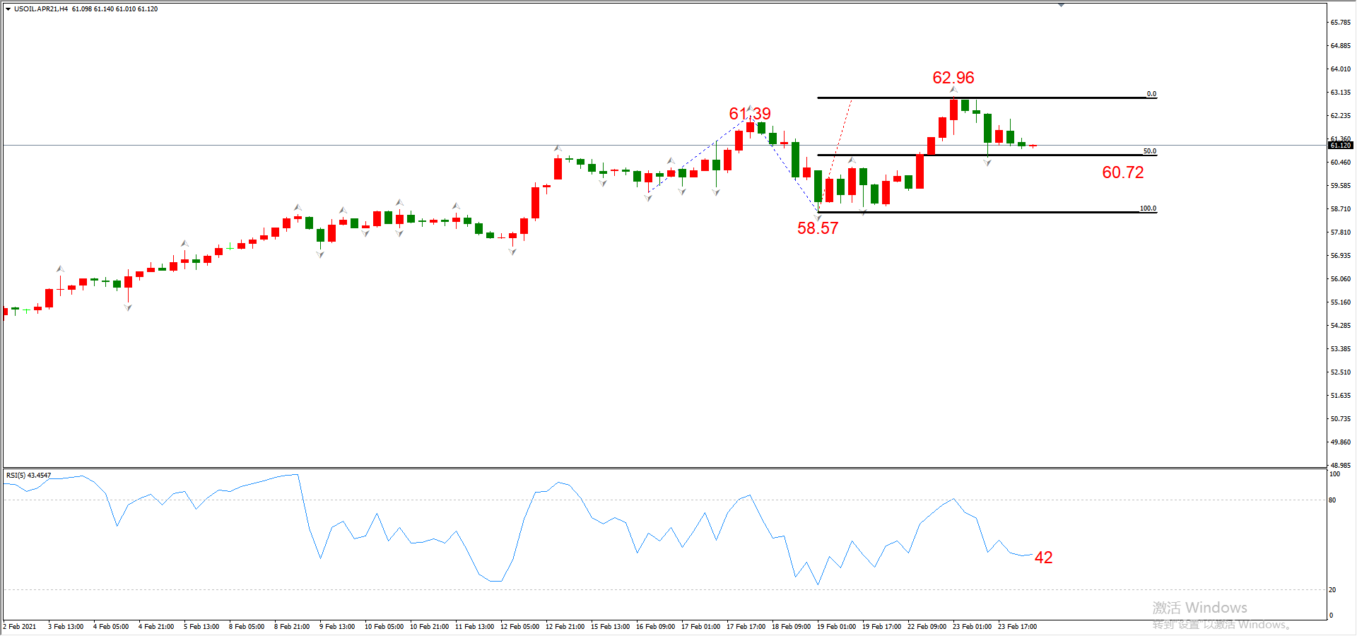 图5,USOIL 2021年3月合约,02月24日 H4周期-ATFX