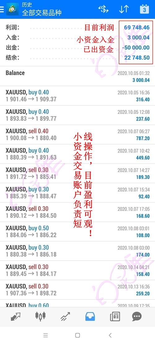 合作是互相的,好的合作是相辅相成,互利互惠,而周期则是建立更长的合作周期,如何在分析师与投资者时间建立这种良性的关系,那肯定是都在合作中达到了自己的预期收益。灵雁的这个学员本月入金5万美金,每次交易的时候手数不会超过一手,以0.5和0.3手居多,这样的仓位显然是比较轻的,但是在初期的合作中,我非常赞成这种交易方法。你找到我是对我的信任,而合作初期,肯定没有坚定的信任理念,那咱们就轻仓交易,看一下单子的盈亏比例,达到你心中预期了,再考虑后续的合作,达不到了,也可以去寻找其他的老师,这样对于投资者也是一个验证的过程。