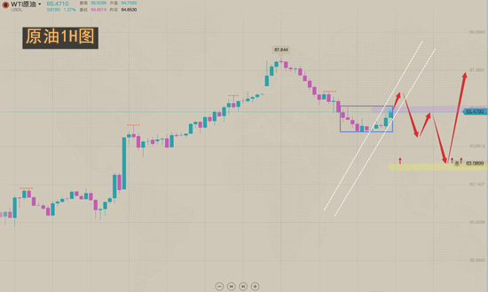 原油昨日美盘给出思路下破66继续看回落到64.8-4位置,也到了我们目标位。今日行情上方关注66.3附近的压制,下方关注64.2附近的支撑,给到各带0.5止损参与即可。波段思路不变,在63.7附近或上方逢低布局多单即可,目标看到76附近!