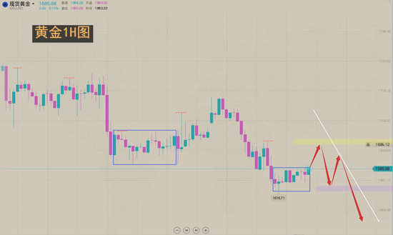 黄金1695下空,止损1702,目标1680-1670;