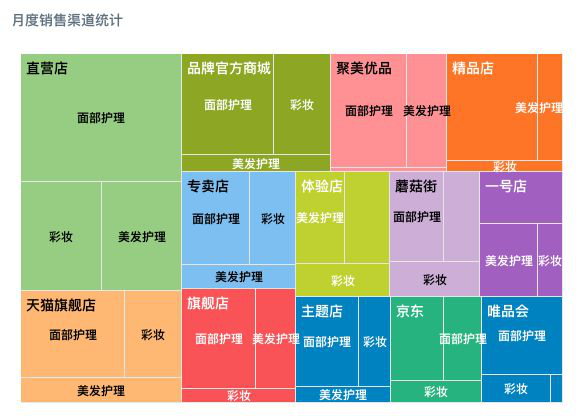 △适用场景:适合展现具有层级关系的数据,能够直观体现同级之间的比较。比如各类电商的SKU。