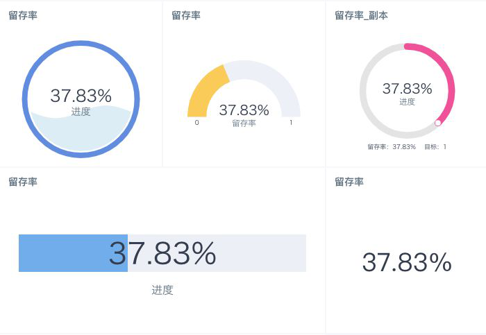 △适用场景:管理报表或报告,直观的表现出某个指标的进度或实际情况。
