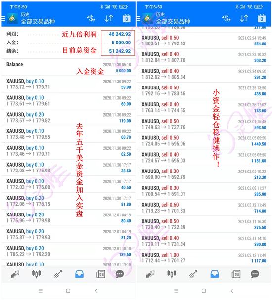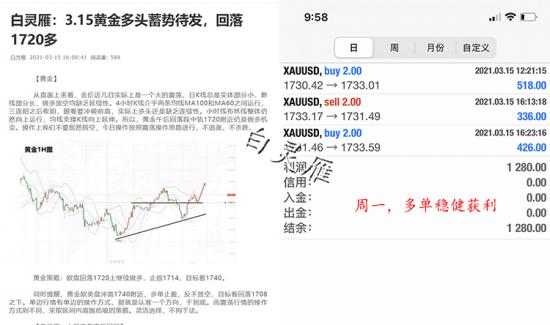 回顾周一。行情亚欧盘单边上涨,与预期完美符合。稳健做单,轻松盈利。周一盈利1200美元。