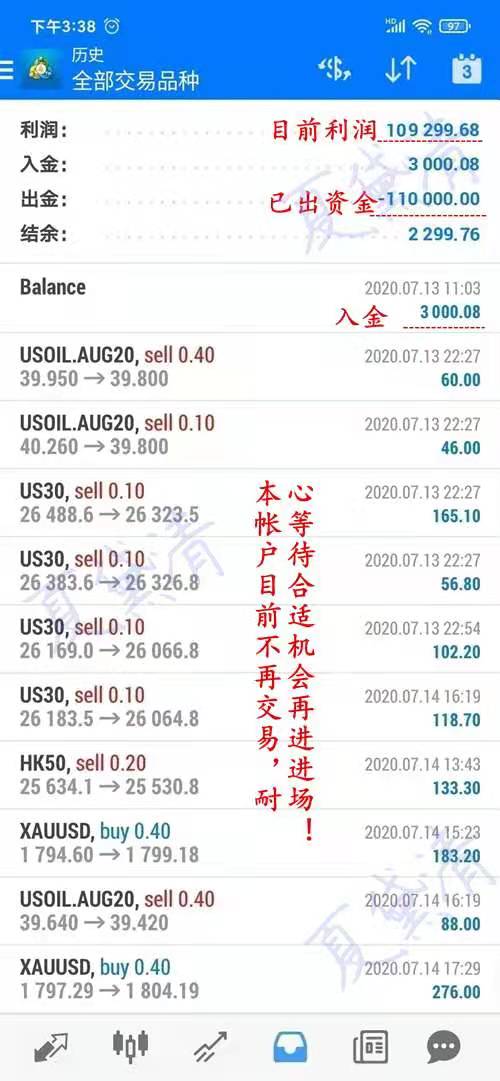 黛清的这个学员,近期一直没有交易,把握度不太准,不如好好保护自己的利润。金融市场犹如一个大学堂,不断交易不断学习,黛清看透了很多东西,也很能理解投资者。漫天的帖子,翻来覆去的,毫无新意,本来投资黄金就有风险,让你们在选择老师的道路上又雪上加霜了!特别是亏损的过多和刚了解黄金投资的,如果你朋友说这行可以赚很多钱,请你不要相信。黄金是一项风险投资,它是长期稳健获利的投资行业,在你不是很了解的情况下请慎重选择,水能载舟也能覆舟!
