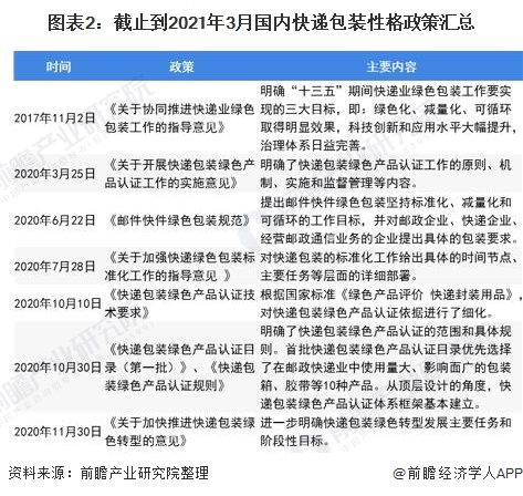 其中,2020年11月30日,国家发改委等八个部门联合发布的《关于加快推进快递包装绿色转型的意见》,从快递包装法律法规和标准体系、快递包装绿色治理、电商和快递规范管理、可循环快递包装应用、快递包装废弃物回收和处置等方面提出具体的发展建议,并提出到2025年国内快递包装基本实现绿色转型的发展目标。