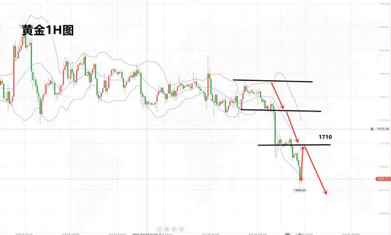 黄金策略:欧盘黄金反抽1710一线空单进场,止损1726,目标1700,1690。
