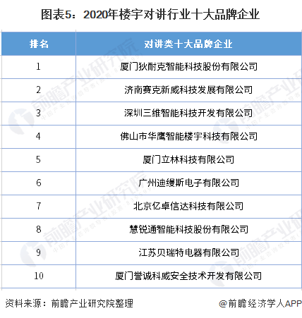 智能楼宇方面,目前国内楼宇对讲厂商呈现出区域集群态势。2020年楼宇对讲行业十大品牌企业中,有4家企业位于珠三角地区,3家企业位于福建地区,1家企业位于长三角地区。