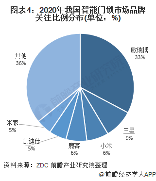 在智能门锁品牌格局方面,根据《2020智能门锁ZDC调研报告》,在最受欢迎品牌排行中,欧瑞博、小米、鹿客、米家等互联网品牌占据了主要关注,而专业的门锁品牌的关注度微乎其微。