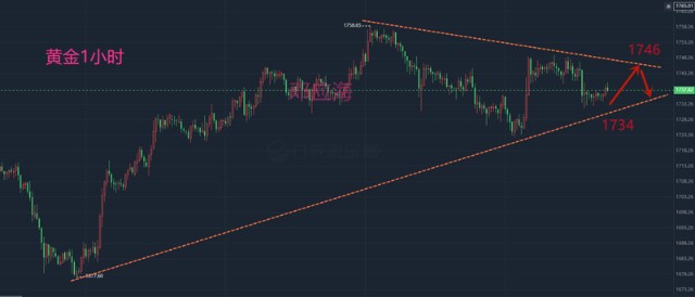技术层面,昨日日K线收阴,小实体,尽管收阴,但并未覆盖前日涨幅空间,就目前来看,金价只能算是震荡,并不能视为转空。4小时级别,均线依然支撑K线上涨,在没有跌破支撑之前,做空还是要谨慎考虑。小时线级别,K线目前在震荡收窄,下方1730支撑强劲,上方1748一线压制同样寸步不让。所以,处于稳健考虑,个人认为今日我们先在1730-48区域内操作,重点布局低多。