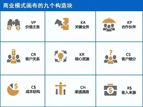 [color=rgba(0, 0, 0, 0.84)]商业模式画布不仅能够提供更多灵活多变的计划,而且更容易满足用户的需求。更重要的是,它可以将商业模式中的元素标准化,并强调元素间的相互作用。具体来讲,包括如下九个模块: