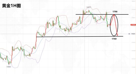 周五延续隔夜走势,早盘开盘小幅拉升触及1790后快速回落,在触及1781位置后快速拉升,随后在日线新高1796附近震荡,美盘黄金走势急转直下,短时间内大跌,最低触及1769一线,尾盘行情小幅回涨,最后收盘在1770附近,日线录得长上影线的中阴线。从技术面分析,日线目前录得2连阴,回吐了周初涨幅,目前日线三个交易日的高点均在1800附近,三次冲高回落,灵雁认为不是极强走势,1800关口阻力还在,随着日线再次录得阴线,带动布林带上轨向下拐头,MACD红色能量柱缩量,日线有行程次顶的迹象,短期仍需关注1800的破位情况。4小时线上,一根大阴柱贯穿布林带上下轨之间,与前期的2根K线在1800下方行程探顶的形态,那么下周仍需重点关注1800关口的破位情况。整体来看,黄金多次冲击1800关口失败,多头动能有所衰竭,市场预期有所减退,行情反转就在瞬息之间,那么我们就要调整思路,关注下方1756-1760一线支撑,如果行情先行破位此区域,那么行情将彻底转为空头,灵雁个人预计下周初在1760-1790区间震荡,操作上区间高沽低渣即可,随时关注破位情况。