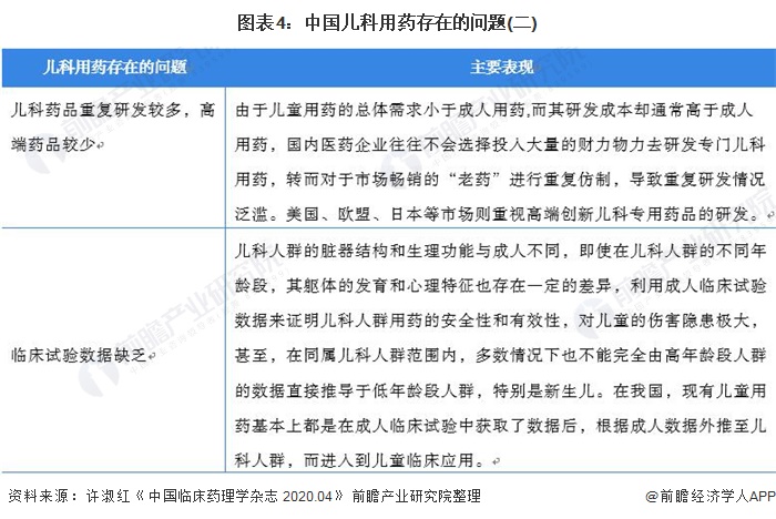 与欧盟等发达国家相比,儿科用药在我国起步较晚,不论是企业研发水平还是政策配套措施都在逐步发展过程。我国儿童用药存在诸多尚未解决的问题,许多药品说明书上没有儿童剂量,儿童使用很大部分是通过成人的剂量折算出来的,儿科用药的安全性隐患较大。