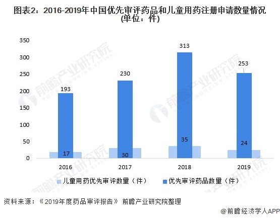 在2020年8月,在国家药品监督管理局药品审评中心(简称药审中心)发布的《2019年度药品审评报告》中显示,全年有10个1类新药、58个进口原研药(含新适应症)、2个儿童用中药新药获批上市。2019年药审中心将253件(按通用名计139个品种)注册申请纳入优先审评程序,同比降低19.2%,其中儿童用药20件,占比为9.5%。