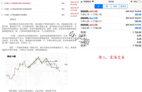 回顾周二,黄金整体处于上行,短线震荡。关注灵雁的朋友都知道我的策略是短线,短线相比其他获利更快更稳定。周二交易三单,获利1700美元。
