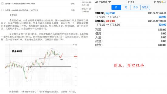 回顾周三,行情先空后多。昨日笔者明确给出策略,全部一一验证,美盘果断给出多单策略,结果暴涨。交易在于随机应变,而不是一根筋。交易两单,盈利800美元。