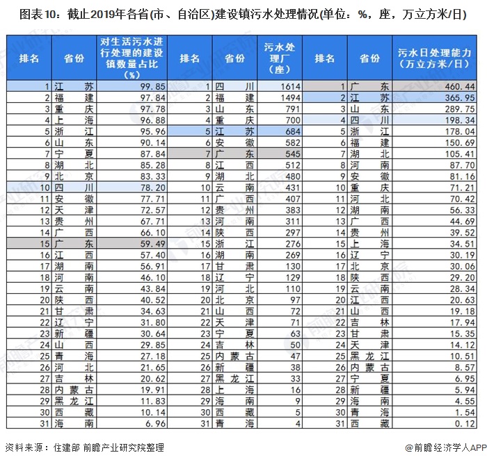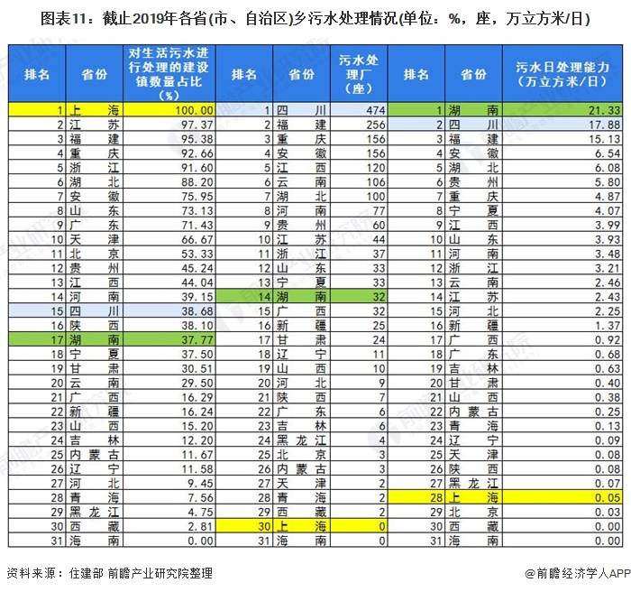 ——四川农村污水处理厂数量最多,海南并未有乡进行生活污水处理