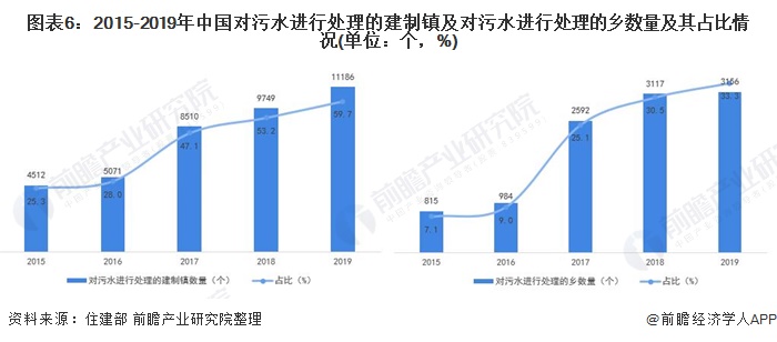 但是,整体来看,我国农村污水处理渗透率较低。截止2019年底,全国对污水进行处理的建制镇数量占全国建制镇的59.7%,对污水进行处理的乡数量也仅占全国乡数量的33.3%。