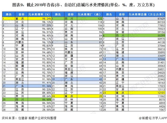 ——重庆县城污水处理率最高,四川县城污水处理厂最多