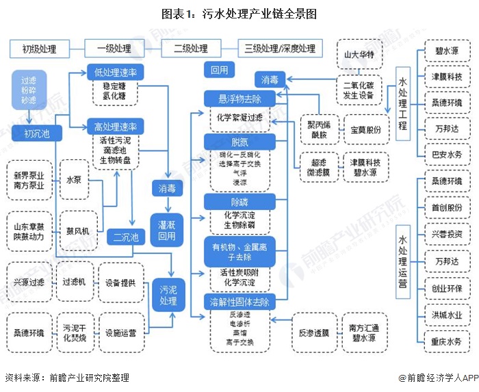 我国污水处理行业产业链包括上游污水处理科研、规划设计,中游污水处理设备制造、采购及工程建设以及下游的运营、管理、监督和维护。