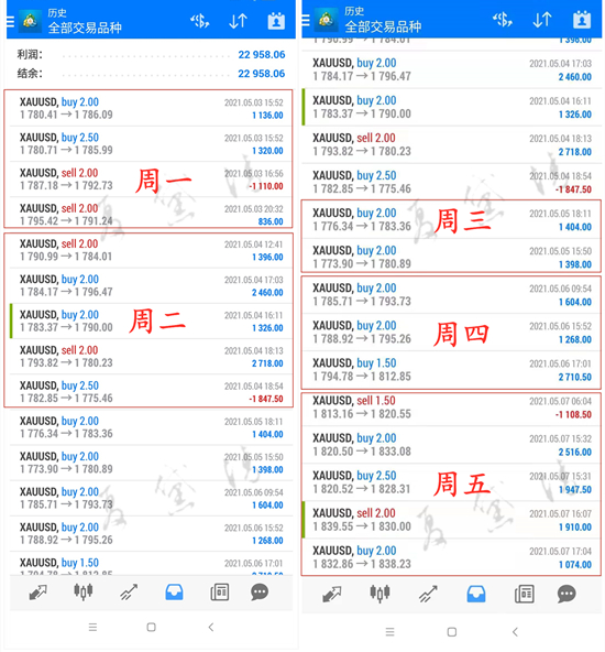 周四黄金一路高涨,磨蹭了这么久,终于突破了。涨势明确,方向对了不怕路远。第一单:1785多,1793出局,盈利8个点;第二单:1788多,1795出局,盈利7个点;第三单:1794多,1712出局,盈利18个点。