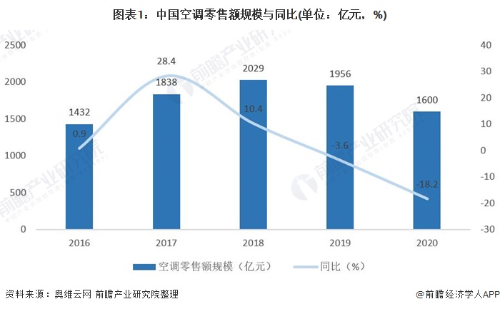 中国空调市场零售量与零售额规模双降