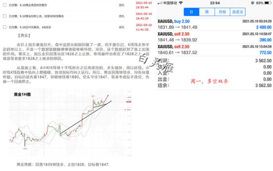 回顾周一,笔者策略是看多,黄金确实震荡偏多。交易三单,盈利3500美元。周一行情不会有太大波动,在区间内操作,回撤到理想点位就多,反弹高点就空。灵活做单,稳健盈利。