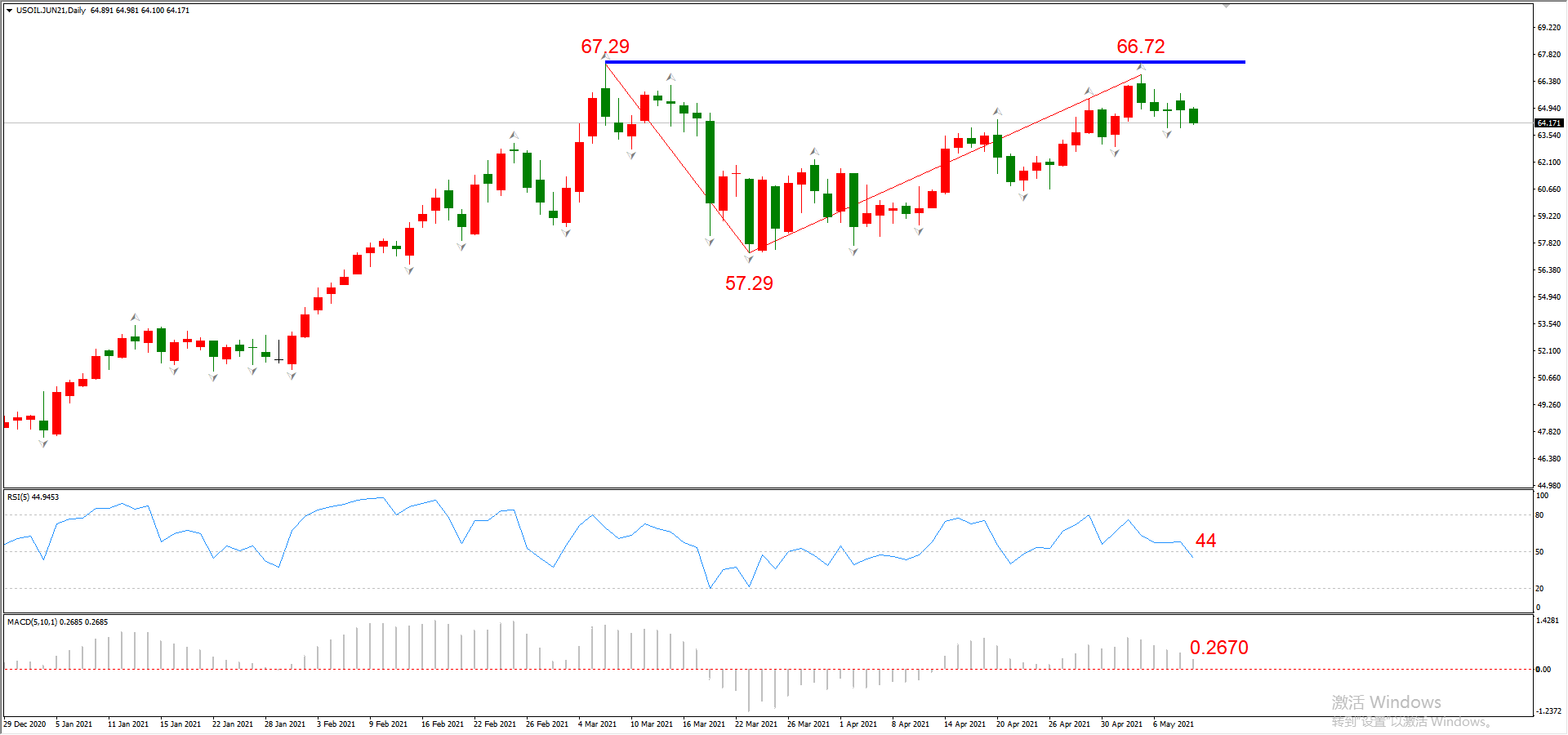 图3,USOIL 2021年6月合约,05月11日 日线周期-ATFX