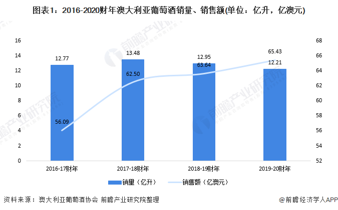 澳大利亚是全球葡萄酒主要出口国之一。据澳大利亚葡萄酒协会公布的统计数据显示,2016-2020财年,澳大利亚葡萄酒销量总体维持在12-13.5亿升之间,销售额保持小幅增长态势。