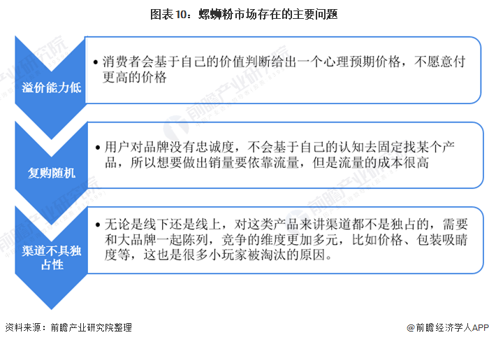 处于行业起步阶段的螺蛳粉,市场竞争格局还未成熟。这给到了入局企业一定机会,但同时,由于没有引领行业的大品牌出现,螺蛳粉的发展也存在着一定问题。螺蛳粉发展的问题可以类比各种小吃,是一个有品类没品牌的市场,所谓没有品牌,体现在三个方面: