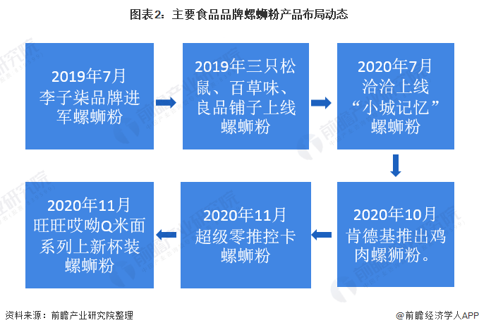 除李子柒外,白家、自嗨锅、良品铺子、三只松鼠等休闲食品品牌也都纷纷入局该领域。2020年11月,旺旺哎呦Q米面系列上新了杯装螺蛳粉。
