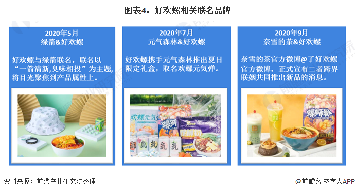 在新的线上螺狮粉销售方式中,营销占据很大的比例。对于网红营销方式,老品牌也在逐步学习,2020年10月25日,螺霸王官宣彭昱畅为品牌代言人,#彭昱畅代言螺霸王#也登上新浪微博热搜。而好欢螺也开始在广告营销上发力,先后与绿箭、奈雪的茶、元气森林打造联名品牌,推动双方发展。