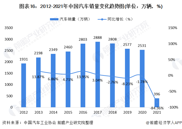 根据中国汽车工业协会统计,2012-2017年,中国汽车销量整体保持增长,近两年有所下降。2019年,中国汽车销量为2576.9万辆,同比下降8.23%。2020年,受新冠肺炎疫情的严重影响,汽车行业的产销出现大幅下滑,表现在消费端,产品消费停滞,市场需求受到较大抑制,2020年,汽车销量为2531.1万辆,同比下降1.78%。2021年1-2月,随着我国经济形势稳定向好,新车累计产销量超疫情前2019年同期近3%。