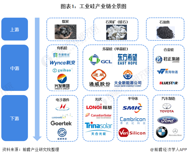 工业硅行业的上游为化工原料制造业,主要包括硅块、热电、还原剂、石油焦等,行业下游主要为电子器件、日化产品、光伏、半导体、汽车制造、房地产等。