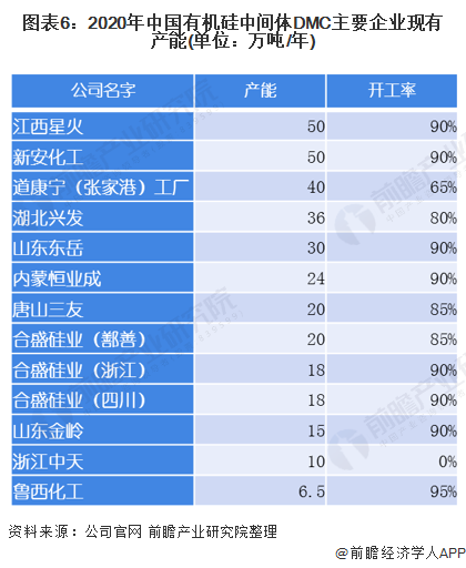 截至2020年底,中国国内DMC生产企业共13家,产能合计约169万吨。其中,江西星火、新安化工的DMC产能达到了50万吨/年,开工率都达到了90%以上;其次是道康宁(张家港)工厂,DMC产能达到了40万吨/年。