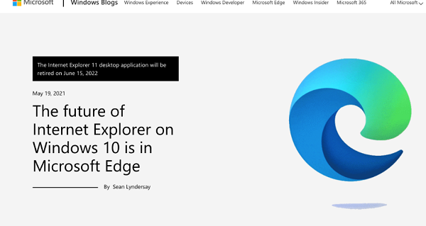 2015年3月微软确认将放弃IE品牌。自此以后,微软逐步放弃对IE浏览器的支持,并转向Microsoft Edge浏览器。2020年8月,微软宣布其在线服务将告别运行25年的IE浏览器。