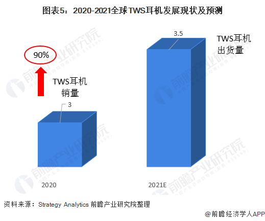 由于领先的供应商不再将有线耳机与新的智能手机捆绑在一起销售,因此蓝牙耳机市场潜能巨大。银河证券认为,TWS耳机功能日益强大,其高增长延续。预计2021年TWS无线耳机的出货量将达到3.5亿部。