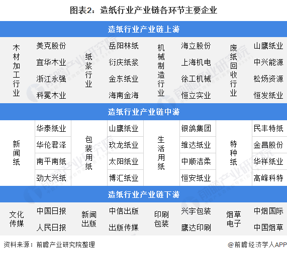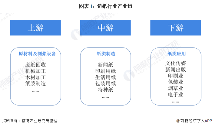 该行业是拉动林业、农业、印刷、包装、机械制造等产业发展的重要力量,已成为中国国民经济发展的新的增长点。造纸行业的产业链从上游到下游依次可划分为:制浆-造纸-纸制品应用。