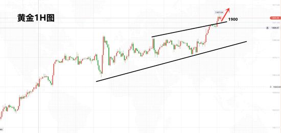 所以,金价早盘再度突破1900,那么顶底转换就在突破1900完成了。所以,金价盘中若有回撤,只要靠近1900之上,就继续做多,目标首先看1920,中长期笔者看1960一线,也就是年初高点一线。