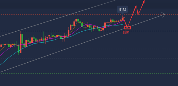 策略一:建议黄金回踩下方1894和1895进场多单,止损1884,目标1918-1920;