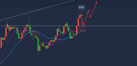 策略一:建议原油回踩下方67-67.20进场多单,止损66.50.目标68-68.10;