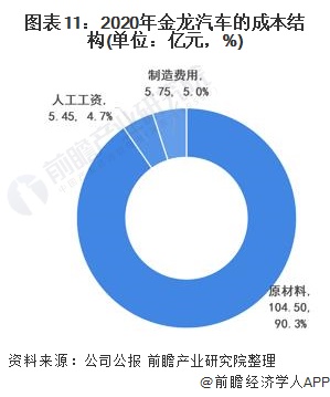进一步分析两企业的成本支出情况,2020年金龙汽车企业经营总成本约为115.7亿元,宇通客车的总成本支出163.8亿元。从成本结构来看,金龙汽车的原材料成本占比高达90.3%,远高于宇通客车的78.5%,反映出金龙汽车的供应商管理和成本控制水平有待提升。