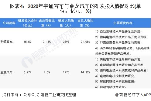 ——研发投入规模:宇通客车约是金龙汽车的2.5倍